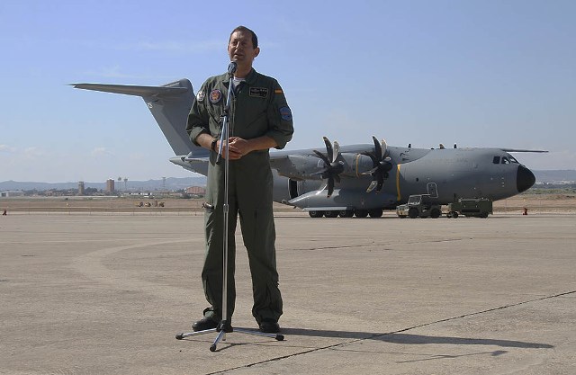 A punto de cumplirse seis meses de la entrega del primer Airbus Defence & Space (DS) A400M al Ejército del Aire, la institución ha organizado una presentación en la sede del Ala 31, en Zaragoza, para mostrar el aparato y que la prensa pudiéramos hablar con los profesionales que lo operan. La presentación ha corrido a cargo del general de Brigada José Luis Pardo, Jefe de la División de Logística EMA/DLO del Estado Mayor del Ejército del Aire, y el responsable del Ala 31, coronel Andrés Gamboa de la Calleja.