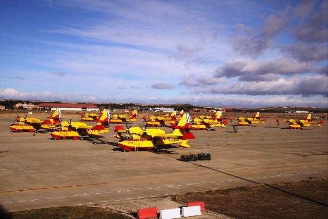 Foto: Parte de la flota de CL-215T/CL-415 del 43 Grupo de Fuerzas Aéreas (foto Julio Maíz/defensa,com)