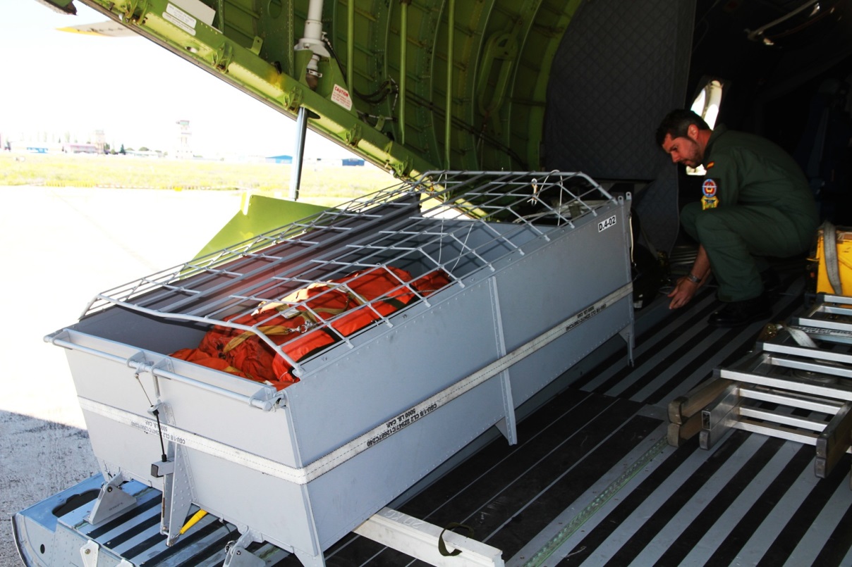 Detalle del cajón con balsa y otros elementos de rescate que emplean actualmente los CN235 VIGMA. (foto Julio Maiz)