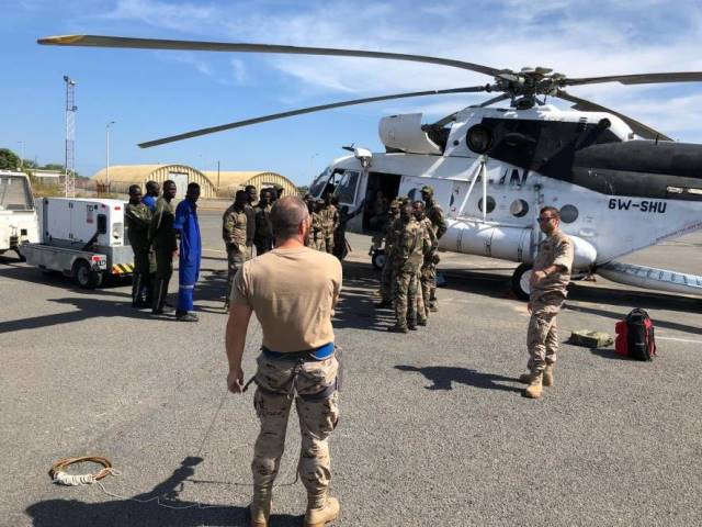 Así, se ha entrenado en la principal sede del Armée de l´Air Sénégalaise, el aeropuerto de Dakar-Leopold Sedar Senghor, donde están basados las casi treinta aeronaves que tiene esta fuerza, incluido el citado Mi-17 matriculado 6W-SHU. Este helicóptero está pintado con un color blanco uniforme, sólo roto por la pintura negra que camufla las manchas que provocan los escapes de las turbinas y una minina bandera de Senegal en la cola, que denota que fue asignado y empleado para alguna de las varias misiones de Paz, que la ONU tiene en marcha en el conflictivo Continente africano.