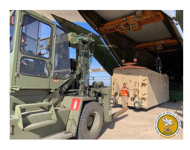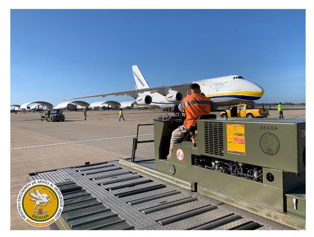 foto: Personal de la SEADA sacando del An-124 la primera MGCS del sistema “Predator” B español. (foto: SEADA).
