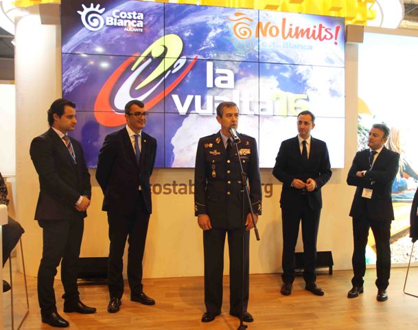 “La seguridad es fundamental para el turismo”, son palabras del general de brigada Francisco Miguel Almerich Simó, jefe del Sistema de Mando y Control Aéreo, pronunciadas en el marco de la recién clausurada Feria Internacional de Turismo (FITUR), hasta donde acudió en el marco de la presentación de dos etapas de la Vuelta Ciclista a España que se realizarán en Alicante, una de las cuales finalizará en la sede Escuadrón de Vigilancia Aérea nº 5 (EVA 5) y el Acuartelamiento Aéreo de Aitana sito en la citada provincia española, unidad que está bajo las órdenes del citado general.