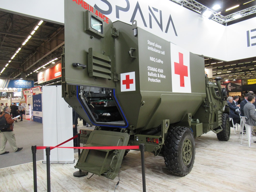 Una de las ambulancias blindadas del Ejército Portugués expuesta por Urovesa en Eurosatory (autor)