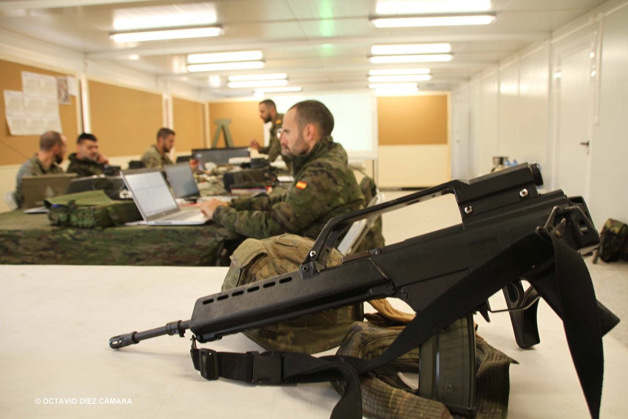 Unos pocos hombres, con ordenadores y equipos avanzados de comunicaciones son suficientes para ejercer la labor propia de un Puesto de Mando de un Batallón. (Octavio Díez Cámara)