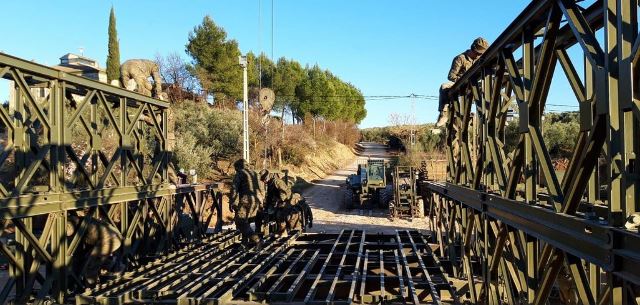 Un puente militar Bailey Ancho, con una longitud de 24,38 m. y un ancho de calzada de 4,20 m. que incluye sus propias rampas de acceso y admite el paso de vehículos de hasta 50 toneladas de peso, ha sido instalado en Casariche (Sevilla) para resolver los problemas de viabilidad causados por la crecida del río Yeguas, el 20 de octubre del pasado año. Para su montaje, que se inició el 21 de enero, se requieren 72 horas y un equipo profesional compuesto por 2 oficiales, 5 suboficiales y 36 militares profesionales de tropa.