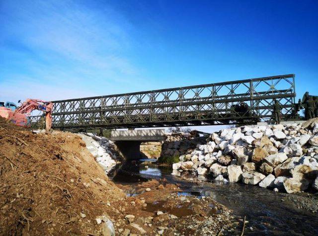 Después de las inundaciones, el alcalde solicitó al Ministerio de Defensa los apoyos necesarios con los que restablecer, de manera temporal, la comunicación de esta población con las colindantes. Tras la autorización inicial de la ministra de Defensa, Margarita Robles, el General de la Fuerza Terrestre encomendó las labores previas de coordinación con las autoridades civiles y reconocimiento al Mando de Ingenieros, del que depende la unidad responsable de la instalación de la infraestructura: el Regimiento de Especialidades de Ingenieros 11.