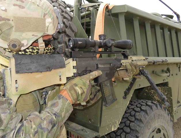 Mientras se aplican esas incorporaciones, que seguramente afectarán a armas de precisión y a ametralladoras medias entre otros sistemas, lo que se ha estado haciendo es llevar a cabo algunas mejoras más limitadas. Una de las que han tenido lugar en los últimos meses es la que busca mejorar la capacidad de los tiradores de precisión que realizan sus cometidos con armas del calibre 5,56x45mm, en el caso del ET fusiles de asalto G36E convenientemente transformados.