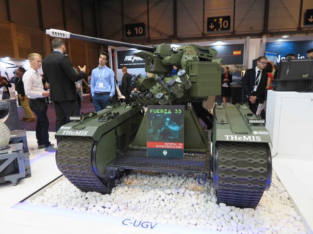 Fotografía: En FEINDEF se presentó el Themis del Mirem Robotics con una estación de armas de Escribano, solución que podría ser óptima para el ET en sus planes de futuro. (Octavio Díez Cámara)