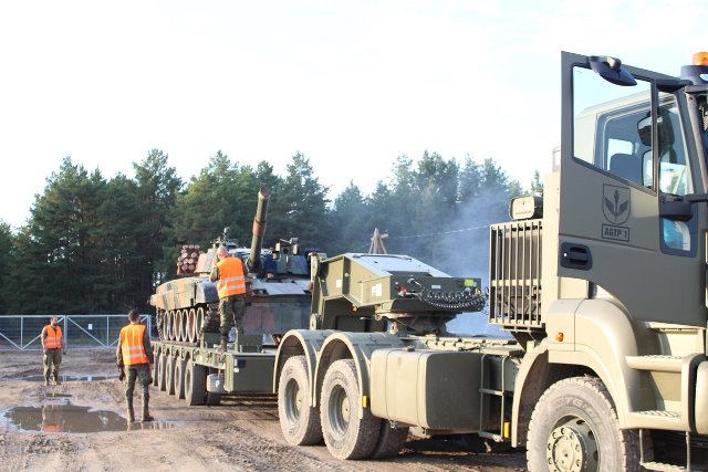 Es destacable el apoyo que se da con este material al resto de la BG, en la imagen se ve que transportan material del ejército de tierra polaco o Wojska Lądowe, en concreto uno de sus carros de combate o Main Battle Tank (MBT), como se definen internacionalmente los carros de combate, del modelo PT-91 Twardy. Estamos ante la versión modernizada localmente del carro ruso T-72, muy similares a los T-90 que utiliza el ejército de Rusia. (Julio Maíz Sanz)
