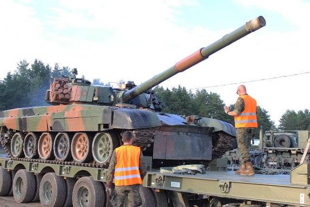 Imagen de uno de los carros de combate PT-91 polacos transportados por los medios del ET. Foto