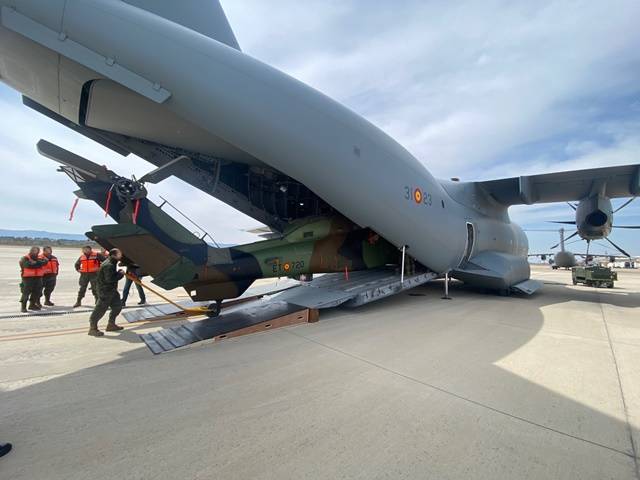 Una nueva prueba de carga ha permitido a la Célula de Evaluación de Cargas para el Transporte Aéreo (CECTA) de la Jefatura de Movilidad Aérea (JMOVA) validar el aerotransporte en el A400M del helicóptero del Ejército de Tierra HA-28 Tigre.