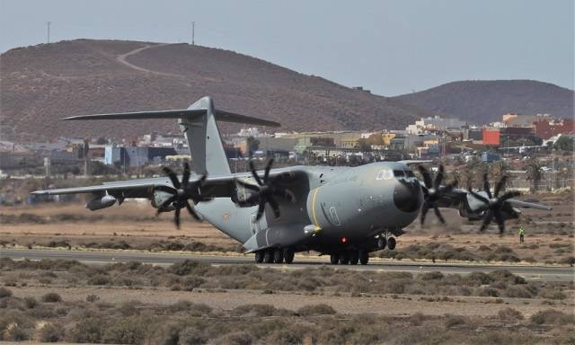 Fotografía: Los anfitriones del Ejército del Aire desplegaran de nuevo en Canarias sus A400M (en la imagen uno despegando en Gando) del Ala 31. (foto Julio Maíz)
