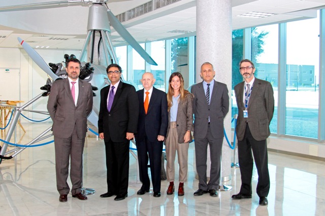 Foto, de izquierda a derecha: José Mª Rubio, Director de Relaciones Institucionales de Airbus Helicopters España, Embajador de Ia India en España, Vikram Misri, cónsul honorario de la India en Barcelona, Luis Valeriano González Pérez, junto a la intérprete, Concejal de Urbanismo y Vivienda del Ayuntamiento de Albacete, Juan Francisco Jerez, y Alejandro Ruiz, Director de Calidad de Airbus Helicopters España.