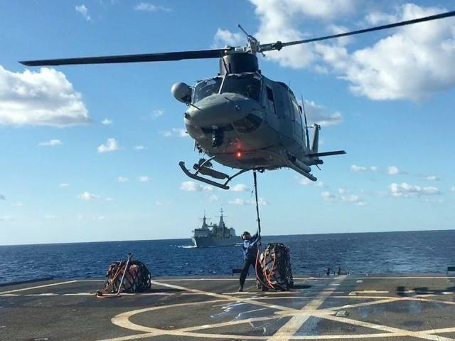 Tras aproximarse los dos navíos logísticos, que están encuadrados en el Grupo Número 1 de Acción Naval de la Armada, cuyas unidades tienen sede en La Graña/Ferrol (La Coruña), se procedía a una maniobra de reabastecimiento de material desde el Patiño al Cantabria. (Cádiz).Rota de la FLOAN, que tiene sede en las instalaciones de la parte de poniente del gran aeródromo en la base aeronaval de 3ª Escuadrilla que operan encuadrados en la AB-212+, (Unidad Aérea Embarcada), que llevan sendos BAC a bordo. En concreto, según las imágenes facilitadas por el EMAD (Estado Mayor de la Defensa), bajo cuyo mando están todas las unidades de las Fuerzas Armadas que participan en operaciones internacionales, se puede ver un modernizado helicóptero UNAEMB(Flotilla de Aeronaves), adscritos a una de las denominadas FLOAN El protagonista de la acción era uno de los helicópteros de la