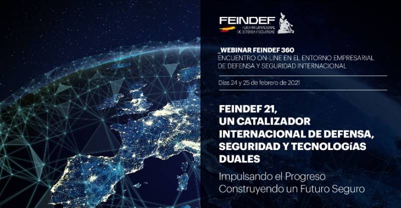 La Fundación FEINDEF organizará los días 24 y 25 de febrero FEINDEF360: Encuentro on-line con el entorno empresarial internacional con el objetivo de poner en valor FEINDEF 2021 como catalizador de los programas de defensa en España y como oportunidad para impulsar la industria de defensa, el empleo, el talento, la innovación y la transformación digital. FEINDEF360 también pondrá el foco en el desarrollo en la era post-Covid de las agendas sectoriales con influencia en defensa y seguridad en el "Marco Estratégico de la España Industrial 2030".