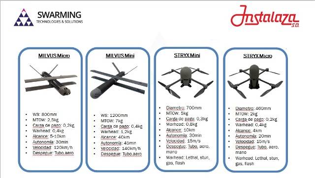 Combinando las áreas de experiencia de ambas empresas, STS e Instalaza han combinado el segmento aéreo y los enjambres de la primera con las municiones lanzadas desde tubo y cabezas de combate de la segunda, creando una familia de sistemas con medios de ala rotatoria y fija que podrán operar en enjambre y en coordinación con otros vehículos tripulados y no tripulados, de cara a cubrir el máximo de los escenarios operacionales previsibles en el futuro.
