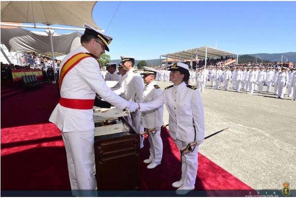 Morenés, entregó el despacho al número uno de la 416 promoción del Cuerpo General de la Armada, alférez de navío, Antonio Duelo Urcelay y al número uno de la 146 promoción del Cuerpo Infantería de Marina, teniente Juan Francisco Vidal Sánchez, a los que impuso también la Cruz al Mérito Naval. Posteriormente recibieron sus despachos el resto de los nuevos oficiales, en esta ocasión han sido 59 alféreces de navío del Cuerpo General de la Armada, nueve tenientes de Infantería de Marina, ocho alféreces de navío del Cuerpo de Ingenieros de la Armada, cuatro alféreces de fragata de la Escala Técnica del Cuerpo de Ingenieros de la Armada y seis oficiales de complemento pertenecientes al Cuerpo General, Infantería de Marina, Ingenieros, e Intendencia.