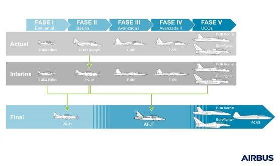 La compañía Airbus ha actualizado la información relativa al programa de entrenador para el Ejército del Aire, al que se refiere como AFJT por Airbus Future Jet Trainer, destacando que se trata de una propuesta diseñada para el Ejército del Aire y que incluye una amplia base industrial nacional. La propuesta de Airbus, en la línea de las tendencias actuales, contempla no solo la fabricación de un avión de entrenamiento sino de un sistema integral que incluye simuladores en tierra y capacidad de entrenamiento embebido en el aparato.