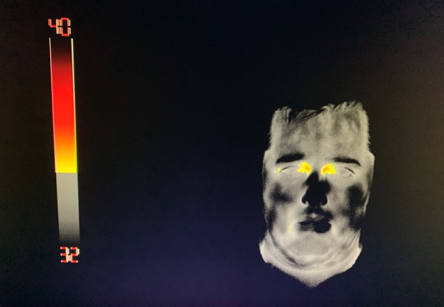 La termografía infrarroja es un medio de monitorización a distancia de la temperatura elevada del cuerpo humano que puede ser empleada de manera rápida y masiva. La cámara adquiere la radiación infrarroja proveniente de cada persona dentro de su campo de visión para posteriormente corregirla y transformarla a una temperatura específica. Este sistema de escaneo de temperatura no afecta al individuo y no provoca la interrupción del movimiento, lo que le da mucha versatilidad al poder ser instalado en zonas con gran flujo de personas sin provocar retenciones, como puede ser la entrada de un edificio, aeropuertos, estaciones de tren, estadios, etc.