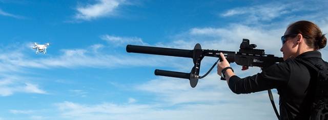 El DroneDefender consiste en un dispositivo portátil de emisión de ondas de radiofrecuencia que funciona asociado a un radar de fabricación israelí. Aunque oficialmente aún en pruebas, el Batelle ya ha sido visto en Irak en manos de tropas estadounidenses. El DroneDefender perturba la señal de control del UAV y la de navegación basada en GPS. Su apariencia es muy llamativa ya que se usa como un fusil de asalto del tipo M-16/M-4 con mira holográfica pero que en lugar de cañón presenta dos antenas frontales de distinto diseño lo que sugiere que emplea dos rangos de frecuencia distintos. Tiene un alcance de 400 metros...