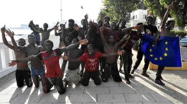 Fotografía: Inmigrantes que saltaron el año pasado la valla de Ceuta (EFE)