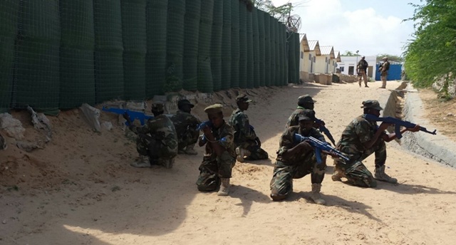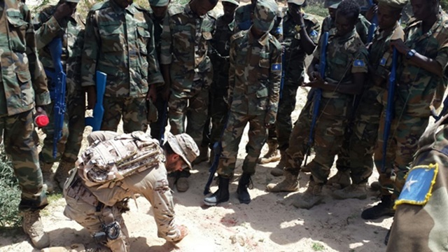 ·Un oficial con un grupo de soldados somalíes durante la teórica.