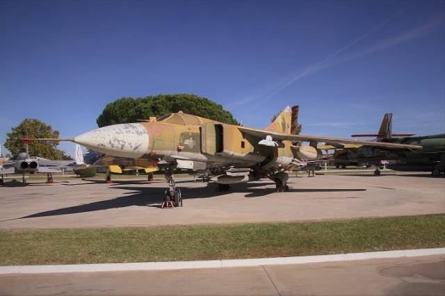 Fotografía: Imagen del MiG-23 que será restaurado próximamente, conservando las insignias de la extinta Fuerza Aérea de la RDA. Foto: Julio Maíz/defensa.com