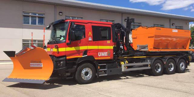 Estos vehículos suministrados por Renault Trucks han sido carrozados por la empresa Zamarbú que tiene su sede en Manzanares fruto de la colaboración entre la propia UME, Zamarbú, Renault Trucks España y los proveedores especializados Hiab España y Maquiasfalt, proveedora esta de los equipos esparcidores de sal y la pala quitanieves de la casa Bucher, por ejemplo. Está previsto adquirir otras cinco unidades de este camión multifuncional con el que la UME se asegura de disponer de un vehículo adaptado a las intervenciones especializadas que se desarrollen. (José Mª Navarro García)