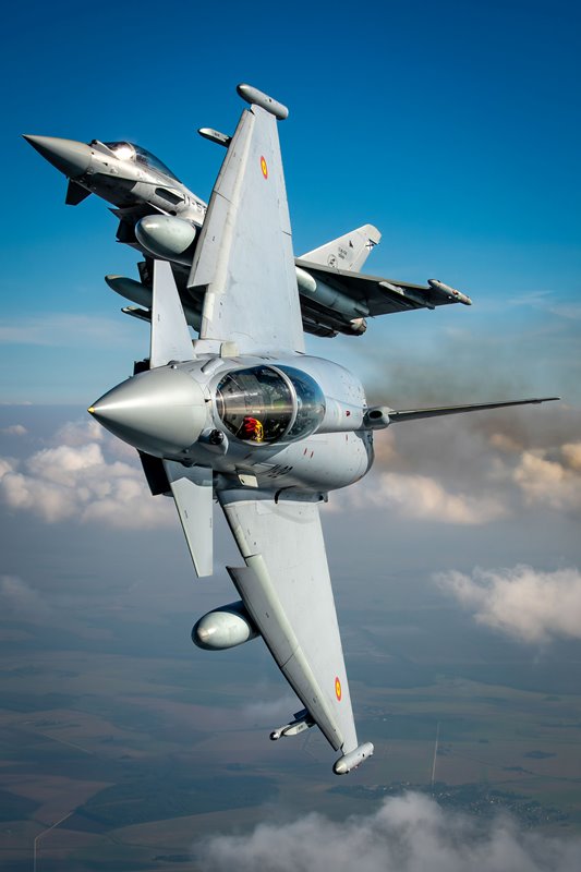 Sobre el cielo de Estonia se ha realizado un espectacular reportaje fotográfico de dos de los aviones de combate Eurofighter del Destacamento Aéreo Táctico Ámbar que mantiene activado el Ejército del Aire y del Espacio bajo mando OTAN en el marco de la denominada policía aérea báltica o Baltic Air Policing (BAP), misión en la que desde 2006 participan, desde 2015 de manera anual.