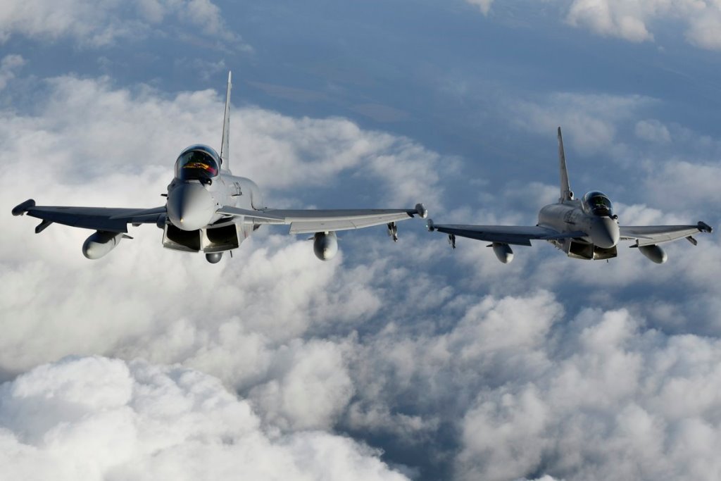 Espectacular imagen de los dos Eurofighter del Ala 11 volando sobre Estonia. (foto AIRCOM)