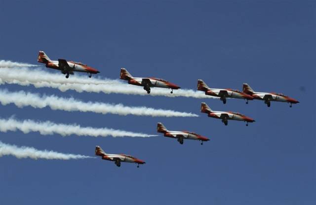 Fotografía: Exhibición de la “Patrulla Águila” durante una reciente exhibición. Foto: Julio Maíz/defensa.com