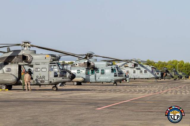 - Un helicóptero H-225M Caracal, un helicóptero AS-555 Fennec y un equipo operativo de fuerzas de extracción, pertenecientes todos ellos a la fuerza aérea francesa.