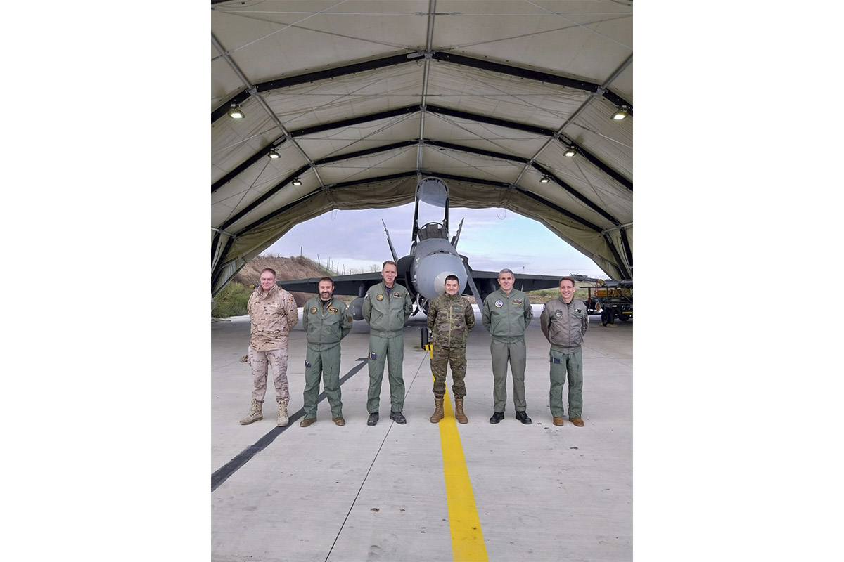 Personal de los relevos frente a un F-18 del destacamento Paznic (Foto EMAD)