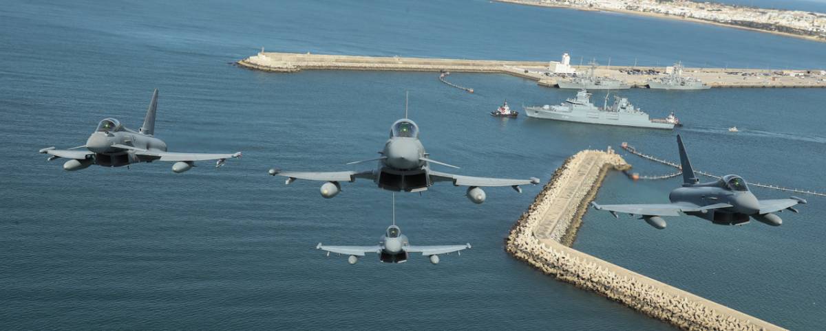 Marcando el inicio despliegue del Pacific Skies 2024, aviones del Ejército del Aire y del Espacio y de la Luftwaffe sobrevolaron la Base Aeronaval de Rota el pasado martes. La fragata alemana Baden-Wüettemberg F222 zarpaba para participar en el despliegue como buque de apoyo y, para despedirla, un A400M y dos Eurofighter españoles, acompañados por dos Eurofighter alemanes, realizaron varios sobrevuelos sobre la base aeronaval española.