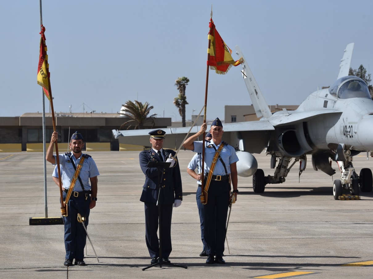 En la ceremonia también se procedido a la entrega del nuevo estandarte del Ala 46, que ahora incorpora la denominación oficial de Ejército del Aire y del Espacio, asumiendo así las nuevas capacidades de la fuerza aérea española.