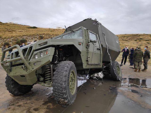 El pasado día 21 tuvo lugar en las instalaciones del Instituto Nacional de Técnica Aeroespacial (INTA) en el Campus de la Marañosa un ensayo destinado a analizar los efectos de la explosión de 6 kg. de TNT bajo la rueda trasera de un Vehículo de Alta Movilidad Táctica (VAMTAC) ST5 del fabricante español UROVESA.