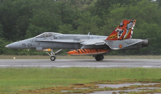 Como viene siendo habitual en estos eventos, se organizó una jornada de spotter el pasado día 17 en la que se pudo ver la evolución de las aeronaves, incluidas la decena con decoraciones especiales. Entre los participantes figuró el Ala 15 del Ejército del Aire, que trasladaba siete de sus cazabombarderos EF-18M Hornet y a 72 de sus miembros, incluidos casi una quincena de pilotos. Entre los aparatos españoles presentes destaca el que se pintó de tigre en 2016, cuando el Ala 15 fue anfitriona del NTM de aquel año en su sede de la Base Aérea de Zaragoza. Este aparato en concreto, matriculado C.15-14 15-01, tras participar en las dos misiones de la jornada, se unía, junto a un Rafale C del EC (Escadron de Chasse) 3/30 'Lorraine' y un Eurofighter italiano del XII Gruppo, a la Patruille de France al este de la Base.Una vez juntos han realizado una espectacular pasada, en la que los aviones acrobáticos franceses dejaban las estelas de humo coloreado formando su bandera ricolor.