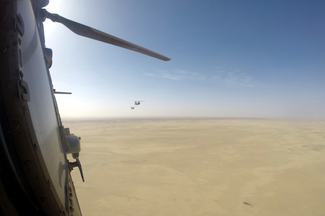 Más de 41 años después de aquel 19 de diciembre de 1975 en el que los últimos helicópteros de las FAMET abandonaron la localidad de El Aaiún en el entonces Sáhara español tras la “Marcha Verde”, cuatro helicópteros de las Fuerzas Aeromóviles del Ejército de Tierra vuelven a las costas africanas del atlántico, para sobrevolar estos inhóspitos parajes, esta vez como parte de la proyección de una fuerza expedicionaria para participar en un ejercicio multinacional de apoyo a las fuerzas armadas del continente.