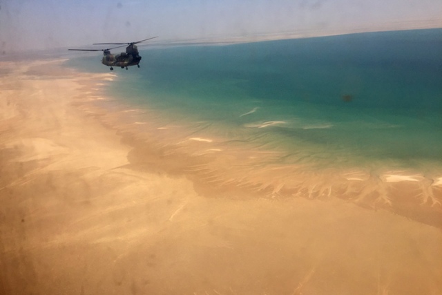 Al amanecer del día 27 de febrero, la formación de cuatro helicópteros despega de nuevo rumbo a África, esta vez hacia la localidad de Nouadhibou, la segunda ciudad más importante del país de destino final después de su capital Nouanchkot. Es el tramo más largo, de unos 1.100 km y casi 4 horas de vuelo bordeando la costa africana hasta esta ciudad fronteriza con la antigua colonia española del Sáhara Occidental.
