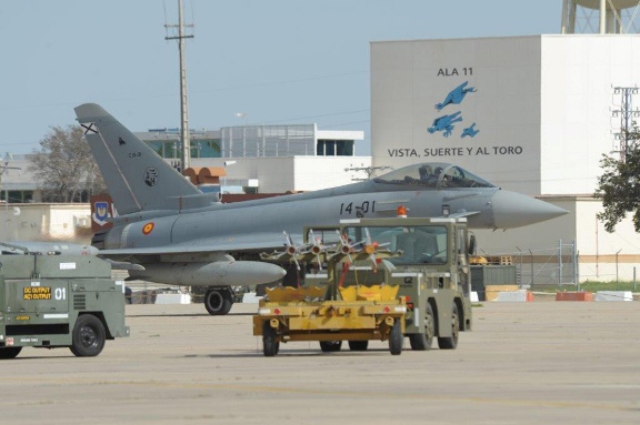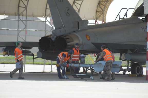 ·Instalando misiles en uno de los Eurofighter del Ala 11.