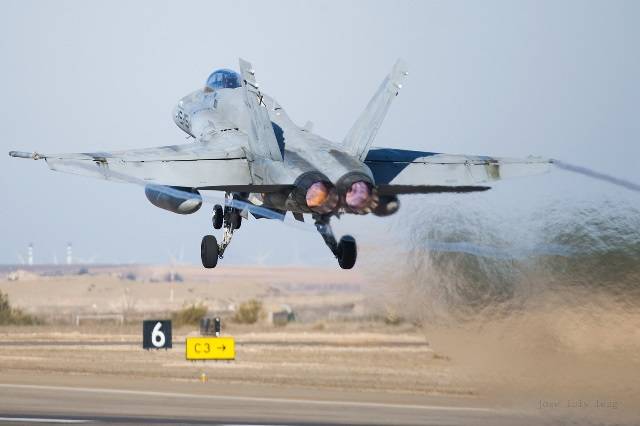 Fotografía: F-18 HORNET en fase de despegue.