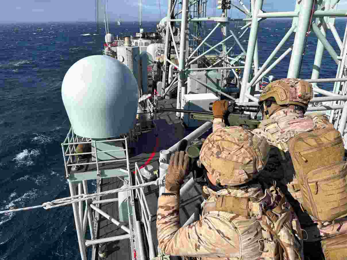 Por su parte, la Fuerza de Protección de Infantería de Marina realizó su ejercicio ATENEA a bordo de las fragatas con tres Equipos Operativos de Seguridad (EOS) pertenecientes a la Unidad de Seguridad de Canarias, al Tercio de Levante y al Tercio Norte, que, integrados con las dotaciones, efectuaron ejercicios de interdicción marítima y force protection.