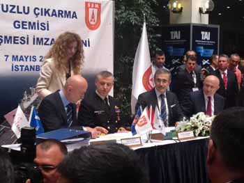 (defensa.com) Durante la feria de defensa IDEF-2015, en Estambul, el astillero turco SEDEF ha firmado el contrato con la Subsecretaría de Industrias de Defensa turca (SSM) para el diseño y construcción de un buque de desembarco anfibio LPD para la Marina Turca, en el que Navantia participa como socio tecnológico. Navantia proporcionará a SEDEF, para su construcción local, el diseño, transferencia de tecnología, equipos y asistencia técnica. El diseño está basado en el LHD “Juan Carlos I” adaptado a las necesidades de la Marina turca, con la gran ventaja de ser un diseño probado y que ha demostrado sus magníficas prestaciones desde su entrega. Los equipos que suministra Navantia son los diésel generadores que serán fabricados en Navantia y el Sistema Integrado de Control de Plataforma.