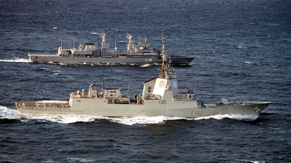 ·La fragata española y la fragata rumana Marasesti durante el ejercicio de evoluciones.