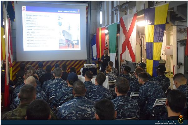 Además, estos ejercicios han permitido adiestrar a ambas dotaciones en operaciones de vuelo con helicópteros de la Flotilla de Aeronaves de la Armada, el transbordo de pesos ligeros entre buques y en ejercicios de comunicaciones. Para el adiestramiento en defensa antiaérea se contó con la colaboración de aeronaves de diferentes países pertenecientes al ‘Tactical Leadership Program’ de la OTAN, operando desde la Base Aérea de Los Llanos (Albacete), así como aviones del Ejército del Aire. A lo largo de los días de mar se han llevado a cabo intercambios de personal entre los dos buques, que han servido para incrementar el conocimiento mutuo y la camaradería entre sus dotaciones. También embarcaron en ambos buques observadores de diversos países OTAN. Durante la estancia de ambos buques en la Base Naval de Rota, se realizaron también diversas actividades deportivas y sociales.