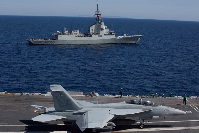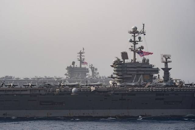Han sido el USS “John C. Stennis” (CVN-74) y el USS “Abraham Lincoln” (CVN-72), que la semana pasada realizaban un ejercicio aeronaval conjunto, junto a sus respectivos navíos de escolta, entre los que figuran el destructor británico del tipo 45 HMS “Duncan” (D-37), la fragata francesa “Languedoc” (D 653) y la española “Méndez Núñez” (F-104), de la clase “Álvaro de Bazán” diseñada y construida por Navantia.
