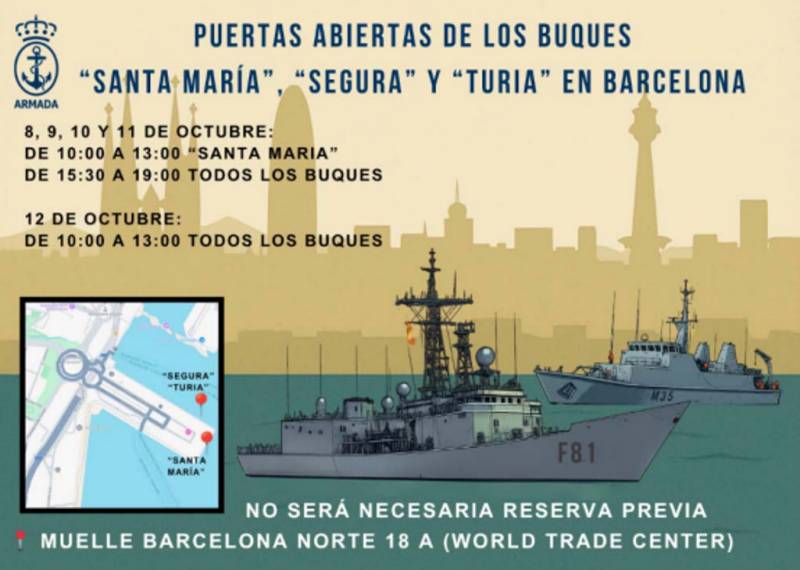 Coincidiendo con la celebración del Salón Náutico de Barcelona, harán parada en el puerto de la capital catalana, en el muelle de Barcelona Norte, los cazaminas “Segura” y “Turia” y la fragata “Santa María” de la Armada.