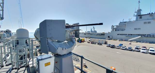 Y lo hacía dotada de sus dos nuevas torres de empleo remoto (RWS) Sentinel 2.0 de la compañía española Escribano Mechanical & Engineering, compañía que se adjudicó en mayo el suministro de 34 de estas estaciones para la Armada en el marco de una licitación con la que se pretende modernizar los medios de protección de los principales buques en servicio.