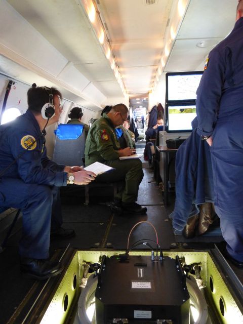 ·Miembros de la Unidad de Verificación a bordo del avión.
