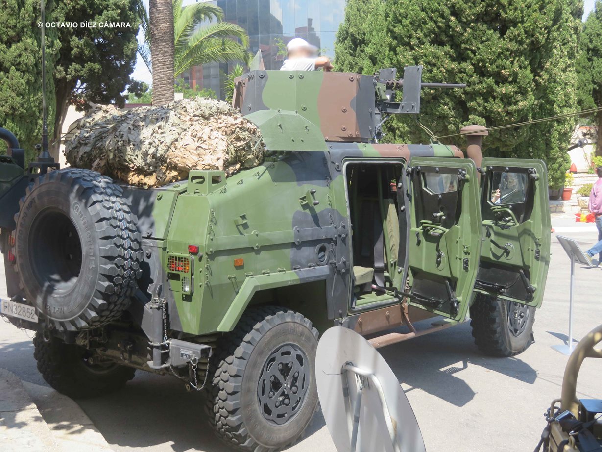 Este vehículo táctico, que tiene un coste unitario de 220.000 euros y del que la Armada ha solicitado diez ejemplares, se expuso con una ametralladora Minimi en el costado izquierdo y otra más en la parte superior, armas que llamaron poderosamente la atención y fueron manipuladas y apuntadas por muchos de los que hasta el Neton se aproximaron. En el stand donde se mostraba este último, en el que vimos a varios militares de la FGNE que llevaban la boina verde que les distingue y diferencia de colectivos similares, también se exponía otro vehículo táctico.